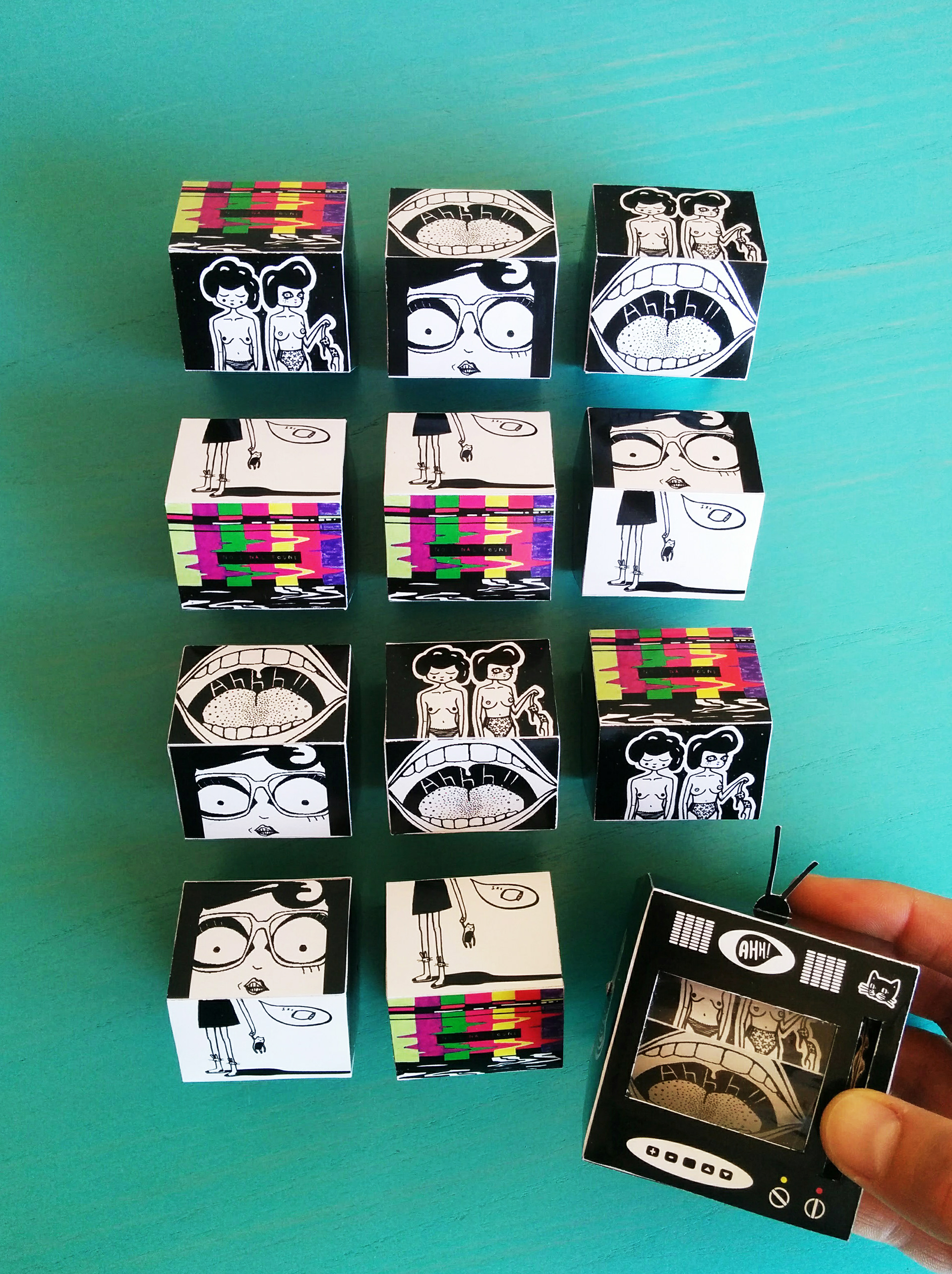 Tv Fanzine with 5 channels. Self-project. Entirely designed, illustrated and handcrafted. Limited edition of 12 fanzines.